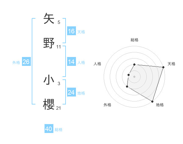 矢野 小櫻さんを姓名の画数から五運を鑑定