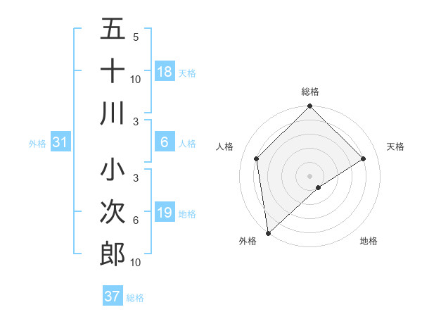 五十川 小次郎さんを姓名の画数から五運を鑑定