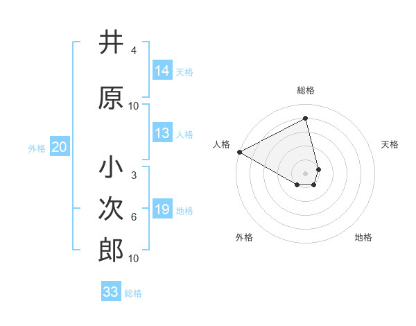 井原 小次郎さんを姓名の画数から五運を鑑定
