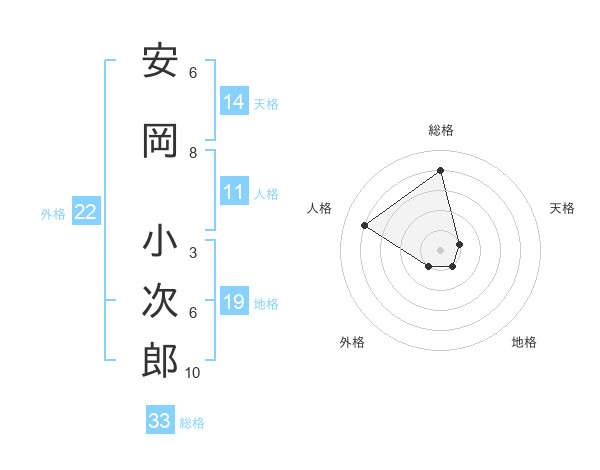 安岡 小次郎さんを姓名の画数から五運を鑑定