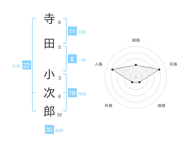 寺田 小次郎さんを姓名の画数から五運を鑑定