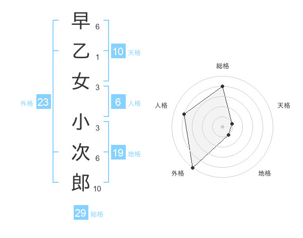 早乙女 小次郎さんの総格は29画の4点!