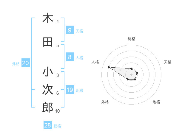 木田 小次郎さんの総格は28画の1点!