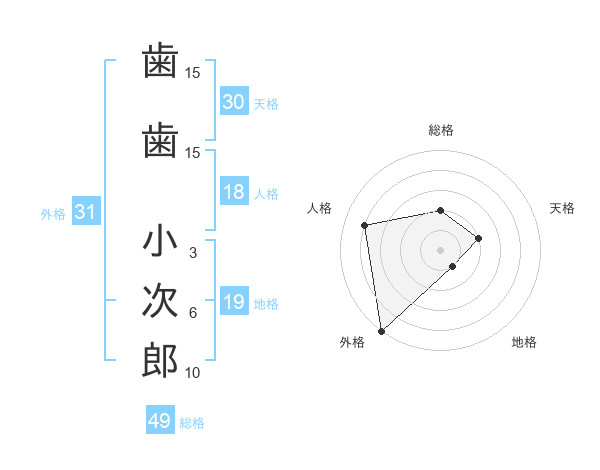 歯歯 小次郎さんを姓名の画数から五運を鑑定