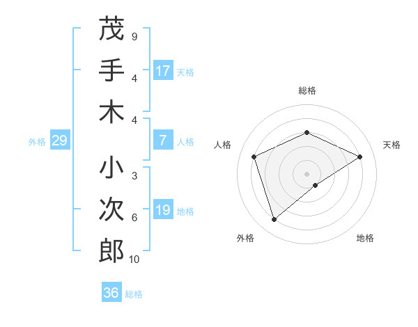 茂手木 小次郎さんを姓名の画数から五運を鑑定