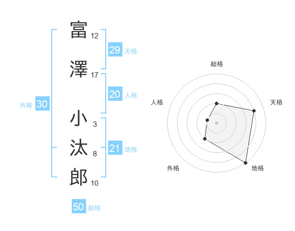 富澤 小汰郎さんの総格は50画の2点!