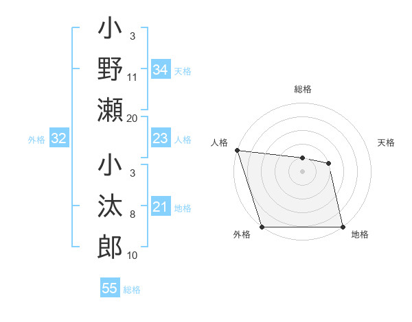 小野瀬 小汰郎さんの総格は55画の1点!