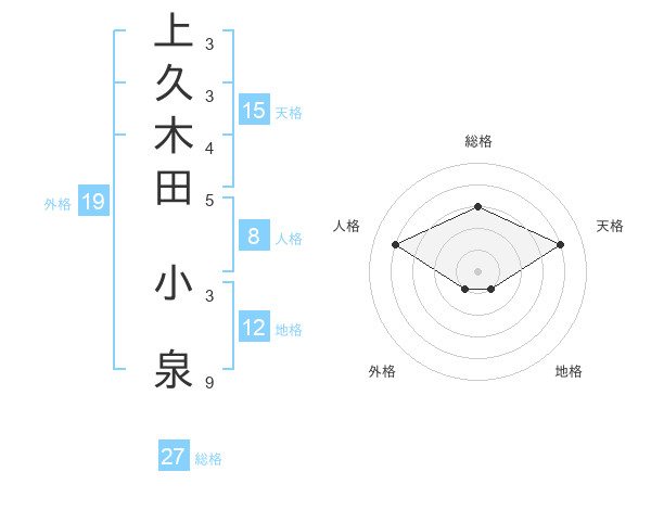 上久木田 小泉さんの総格は27画の3点!