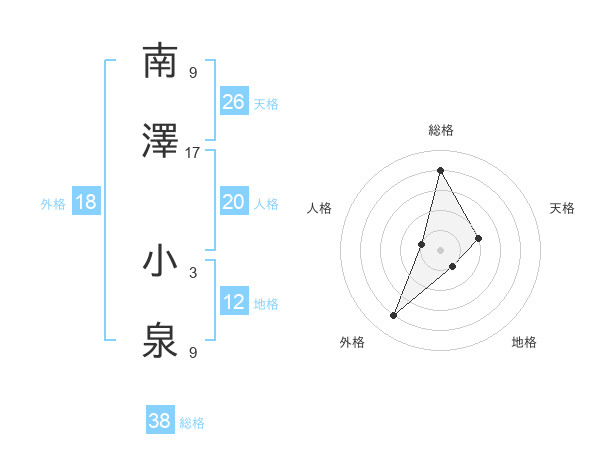 南澤 小泉さんを姓名の画数から五運を鑑定