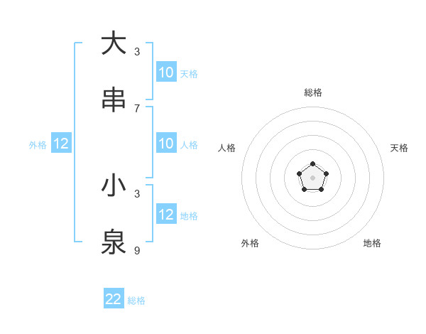 大串 小泉さんの総格は22画の1点!