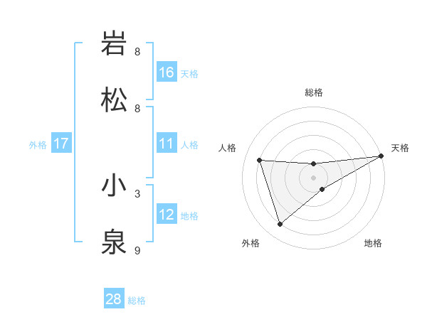岩松 小泉さんを姓名の画数から五運を鑑定