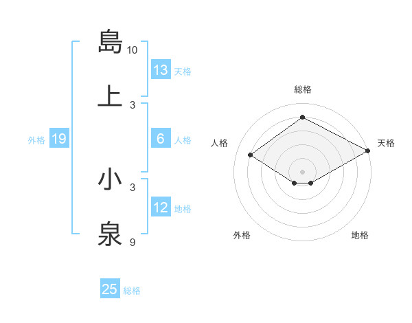 島上 小泉さんの総格は25画の4点!