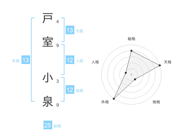 戸室 小泉さんの外格は13画の5点!