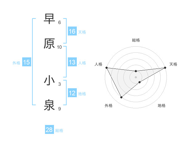 早原 小泉さんの総格は28画の1点!