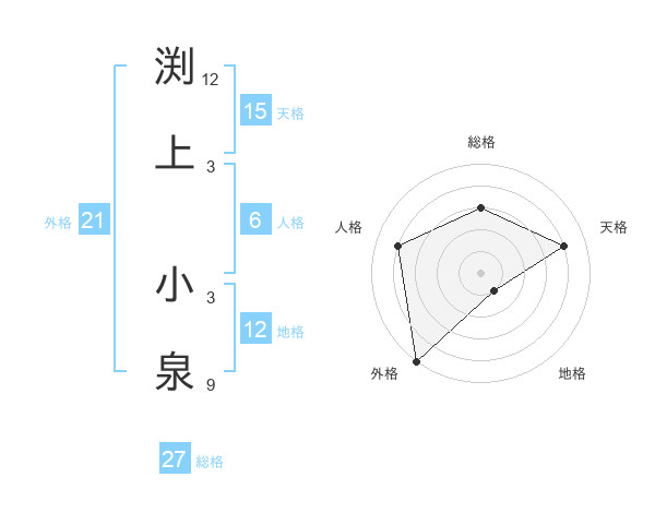 渕上 小泉さんの地格は12画の1点!