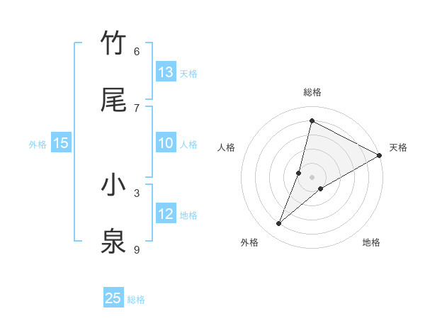 竹尾 小泉さんを姓名の画数から五運を鑑定