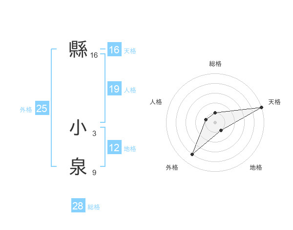 縣 小泉さんの天格は16画の5点!