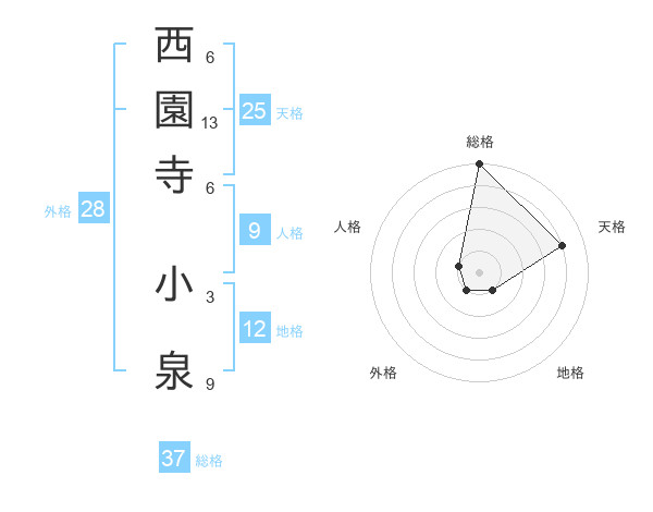 西園寺 小泉さんを姓名の画数から五運を鑑定