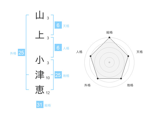 山上 小津恵さんを姓名の画数から五運を鑑定