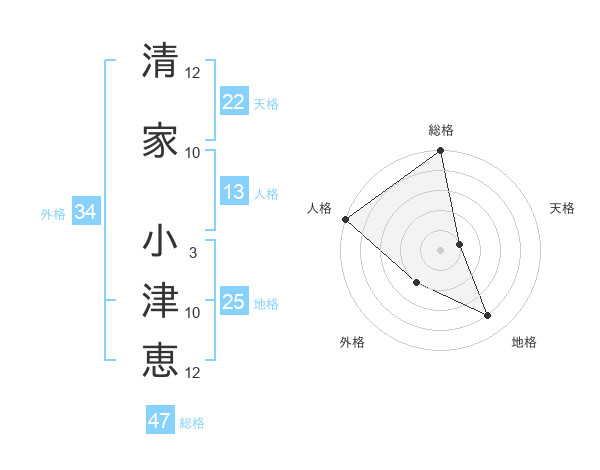 清家 小津恵さんの総格は47画の5点!