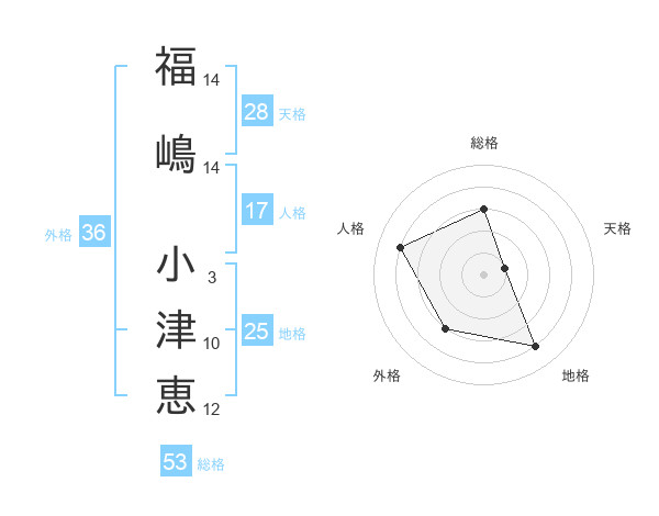 福嶋 小津恵さんを姓名の画数から五運を鑑定