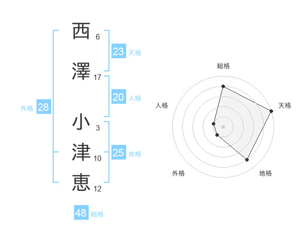 西澤 小津恵さんの天格は23画の5点!