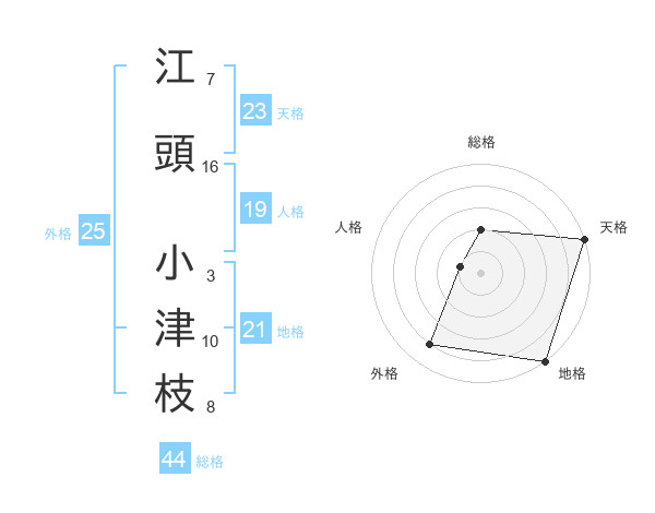 江頭 小津枝さんを姓名の画数から五運を鑑定
