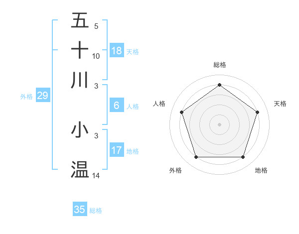 五十川 小温さんの総格は35画の4点