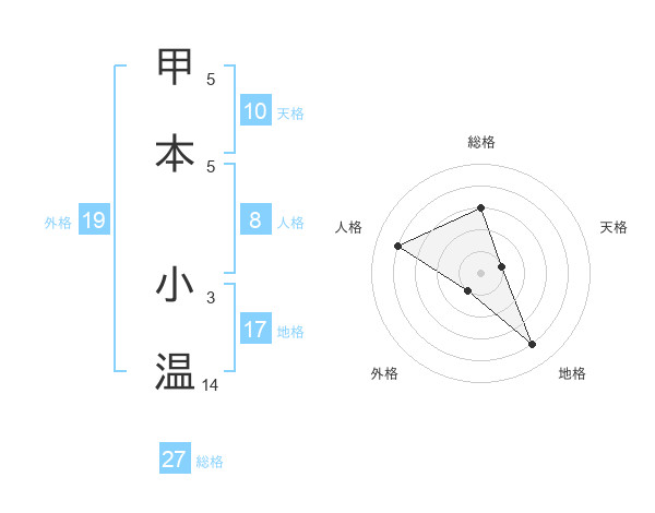 甲本 小温さんの総格は27画の3点!