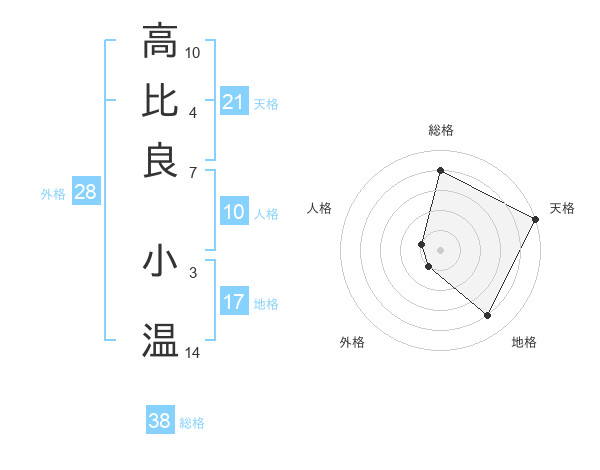 高比良 小温さんの総格は38画の4点!
