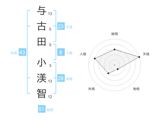 与古田 小渼智さんの天格は23画の5点!