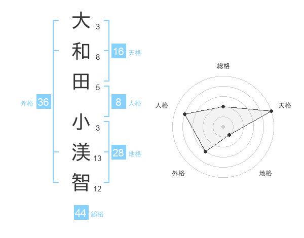大和田 小渼智さんの天格は16画の5点!
