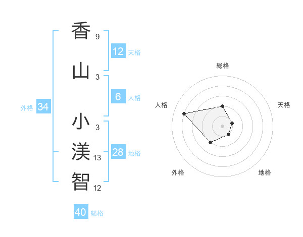 香山 小渼智さんの総格は40画の2点!