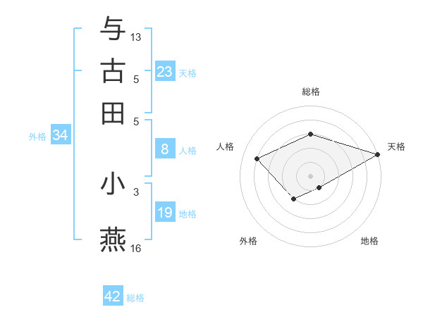 与古田 小燕さんを姓名の画数から五運を鑑定
