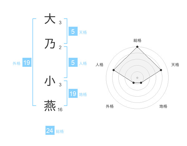 大乃 小燕さんを姓名の画数から五運を鑑定