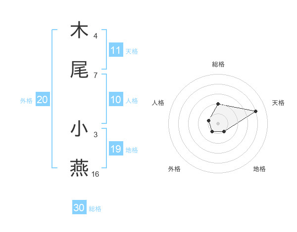 木尾 小燕さんの総格は30画の2点!