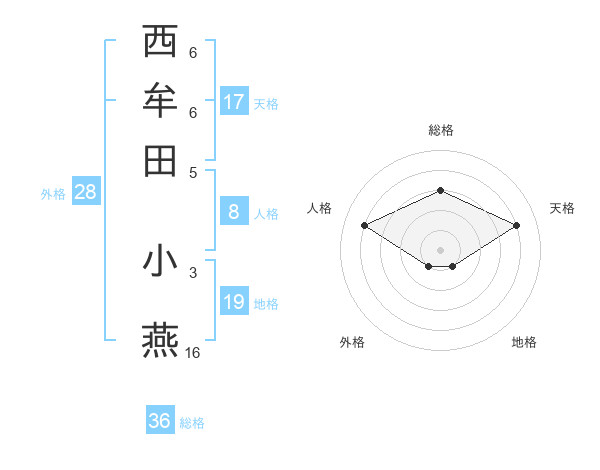 西牟田 小燕さんを姓名の画数から五運を鑑定