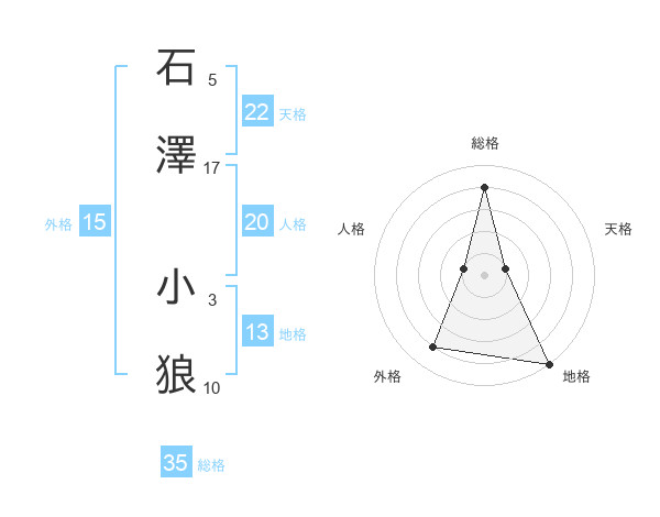 石澤 小狼さんを姓名の画数から五運を鑑定