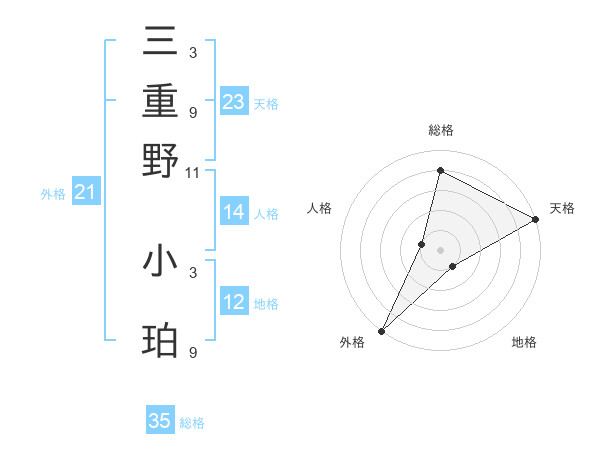 三重野 小珀さんを姓名の画数から五運を鑑定