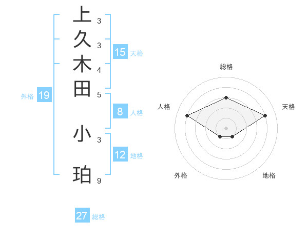 上久木田 小珀さんを姓名の画数から五運を鑑定