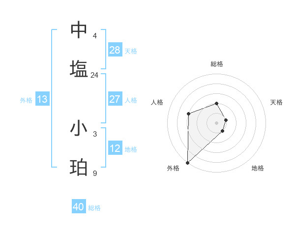 中塩 小珀さんを姓名の画数から五運を鑑定