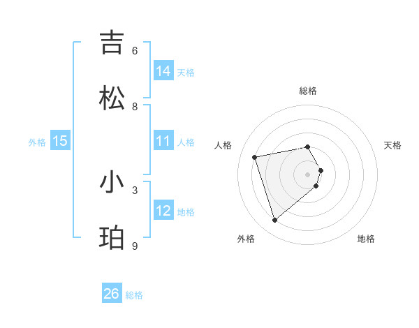 吉松 小珀さんの外格は15画の4点!