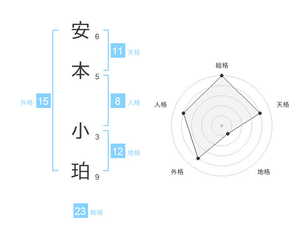 安本 小珀さんの総格は23画の5点!