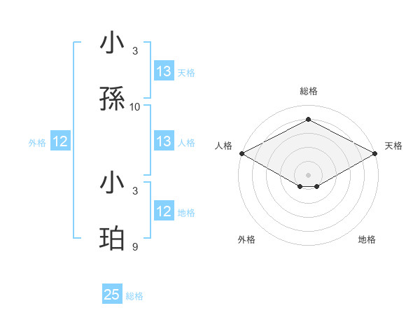 小孫 小珀さんの天格は13画の5点!
