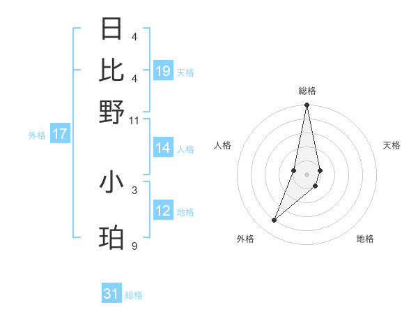 日比野 小珀さんを姓名の画数から五運を鑑定