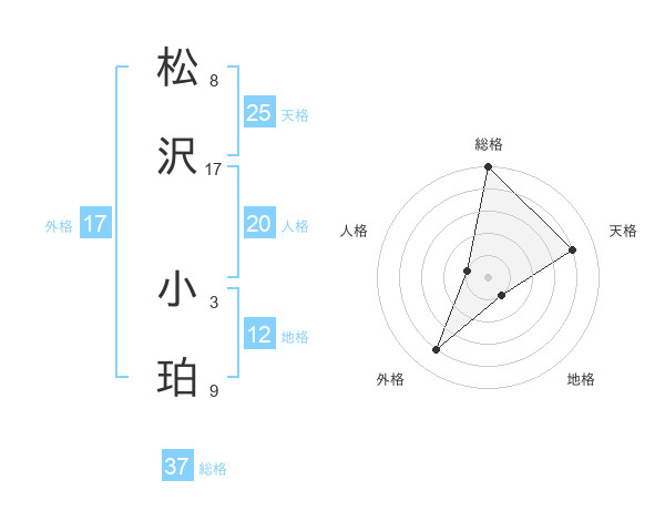 松沢 小珀さんを姓名の画数から五運を鑑定