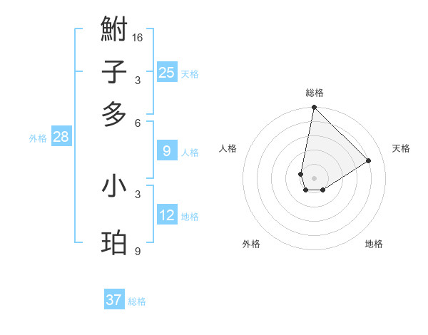 鮒子多 小珀さんを姓名の画数から五運を鑑定