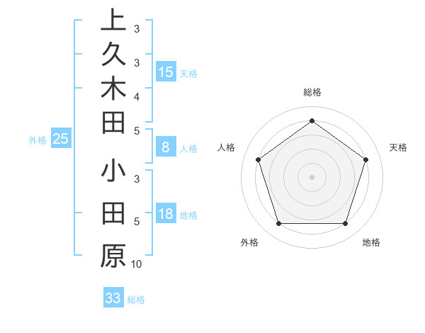 上久木田 小田原さんを姓名の画数から五運を鑑定