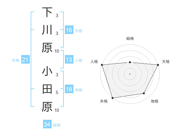 下川原 小田原さんを姓名の画数から五運を鑑定