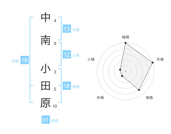 中南 小田原さんの総格は31画の5点!